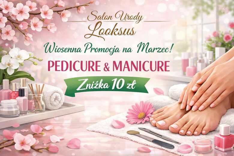 Wiosenna promocja na marzec przy usłudze pedicure oraz manicure zniżka 10 zł.